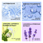 - Thành phần chính: Chiết xuất hoa kim ngân, Tế bào gốc hoa Oải Hương, glycerin, chiết xuất lô hội
